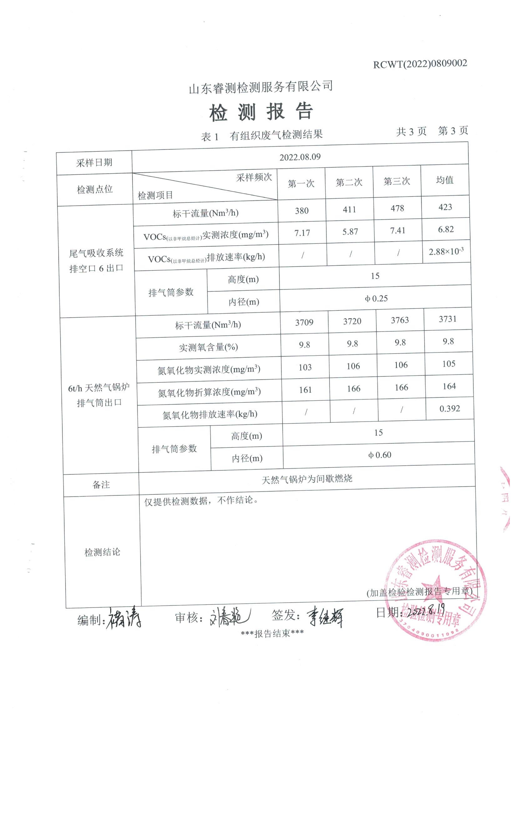 2022年8月份自行檢測報告